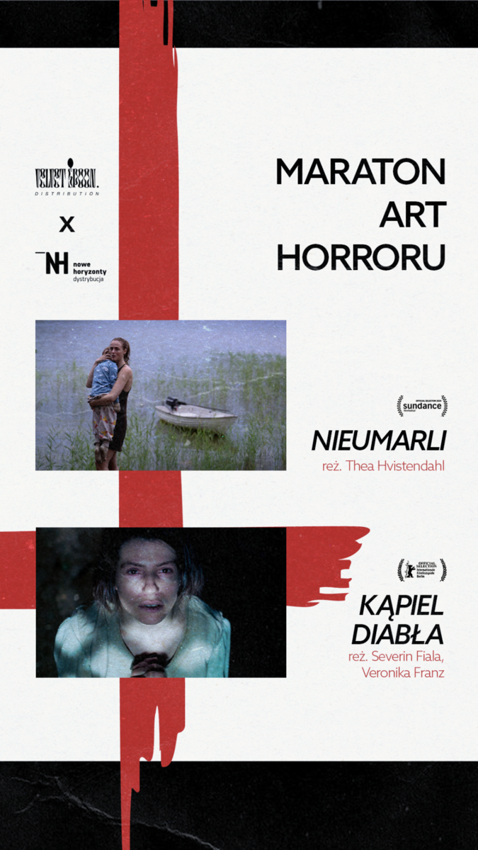 Chcemy zaproponować Państwu pierwszy w Polsce maraton art horroru, na który złożą się dwa nagradzane i doceniane na międzynarodowych festiwalach (Sundance i Berlinale) filmy. Filmy, które umiejętnie i w sposób autorski korzystają z elementów grozy i fascynująco przetwarzają gatunkowe wzorce. Oba tytuły zostaną zaprezentowane w ramach maratonu przedpremierowo.