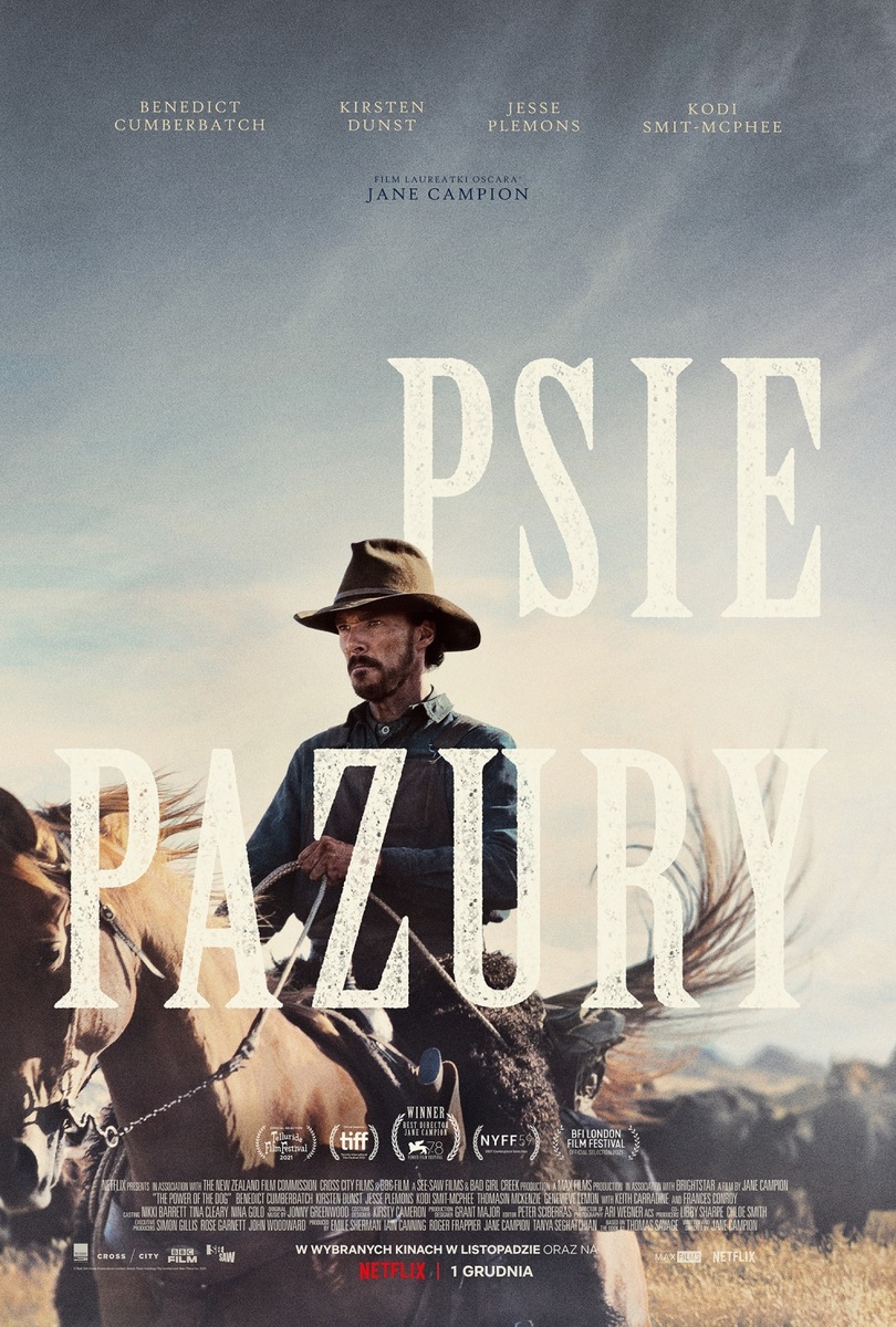 Nowy film Jane Campion PSIE PAZURY w wybranych kinach (!) od 19 listopada i na Netflix od 1 grudnia! W rolach głównych Benedict Cumberbatch, Kirsten Dunst i Jesse Plemons. Charyzmatyczny farmer Phil Burbank budzi powszechny podziw i strach. Gdy jego brat sprowadza na wspólne ranczo nowo poślubioną żonę i jej syna, Phil staje się ich dręczycielem. Wkrótce jednak zaczyna do niego docierać, czym jest miłość.*******