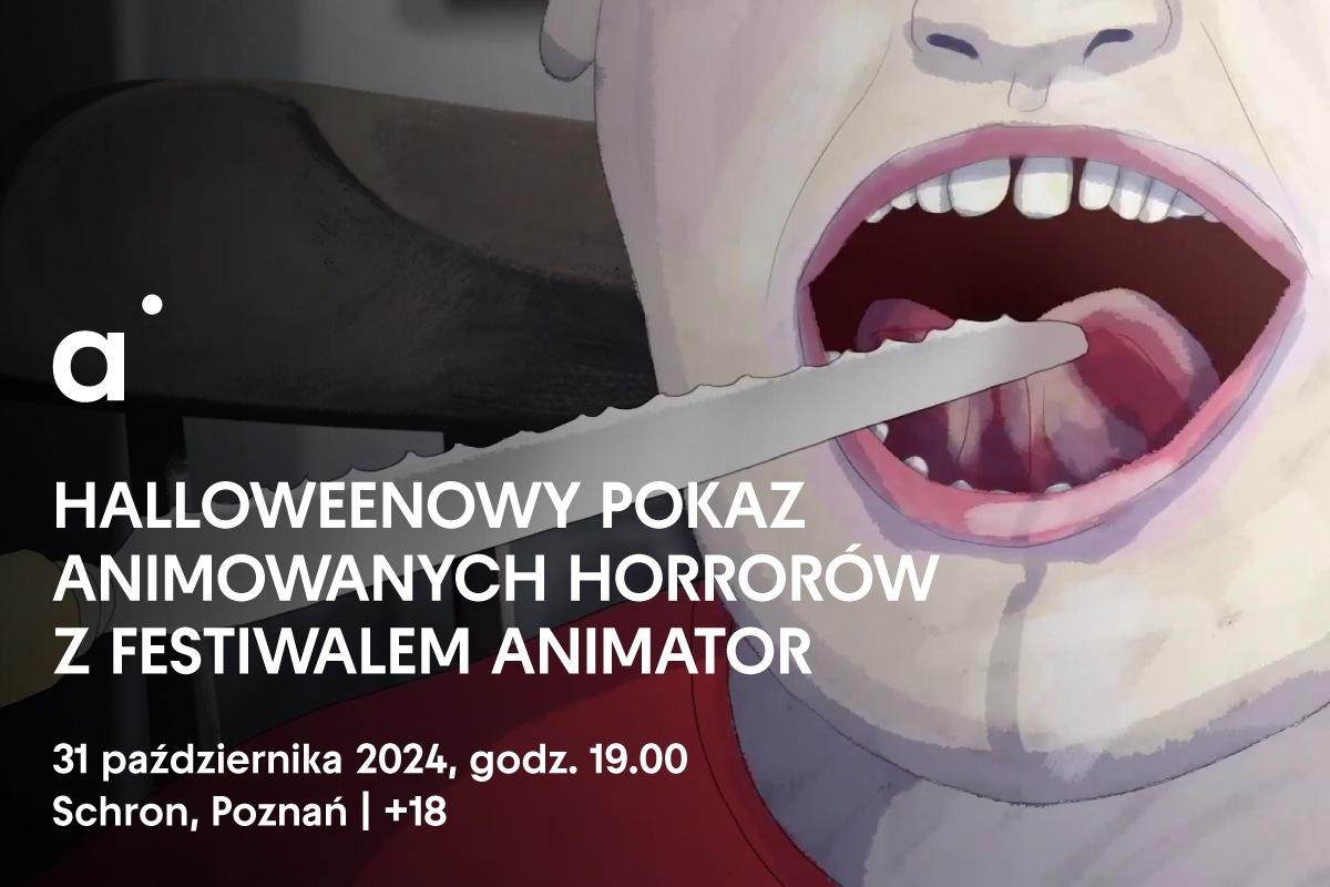 Halloweenowy pokaz z Festiwalem Animator KOSZMARYNKI VOL. 2, 76’, 18+ Data: 31.10, godzina 19:00 Miejsce: Schron, Poznań, ul. Taczaka 10 Ceny biletów: - 30 zł (do 27 października) - 35 zł (od 28 do 31 października) Zapraszamy na Koszmarynki Vol. 2 czyli kolejny pokaz anormalnych, krótkometrażowych animacji, zebranych razem dla spragnionych krwawych wrażeń i bezsennych nocy filmomaniaków i filmomaniaczek. Animować znaczy ożywiać, ale w tym przypadku będzie wręcz na odwrót, bo będziemy podziwiać jak ręce animatorów i animatorek rozrywają ożywione przez nich ciała na kawałki. PROGRAM (76 min.): To the Brink, Hugo Docking, Wielka Brytania / UK 2023, 4’00” Le Meat, Wolf Matzl, Austria 2013, 2’10” Teeth, Daniel Gray & Tom Brown, Wielka Brytania...
