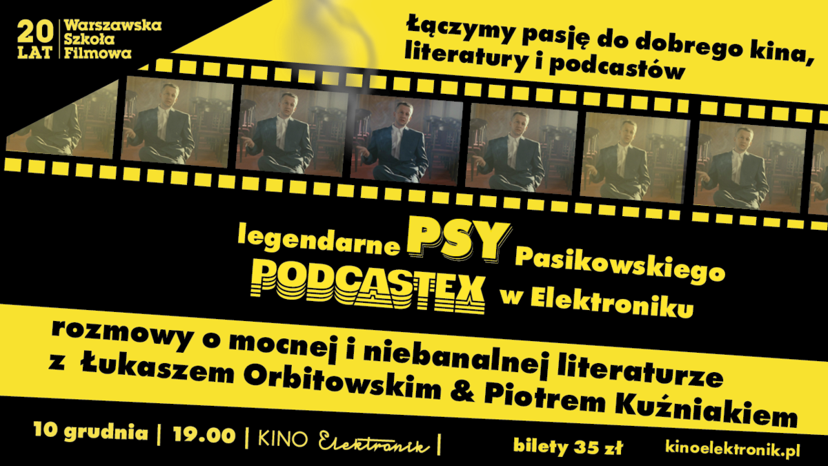Już 10 grudnia macie szansę obejrzeć na dużym ekranie Kina Elektronik legendarne „Psy” Władysława Pasikowskiego.Projekcji towarzyszy spotkanie z Podcastexem, czyli fenomenalnym duetem – Bartek Przybyszewski i Mateusz Witkowski – przybliżającym tysiącom internautów rzeczywistość lat 90-tych w Polsce.