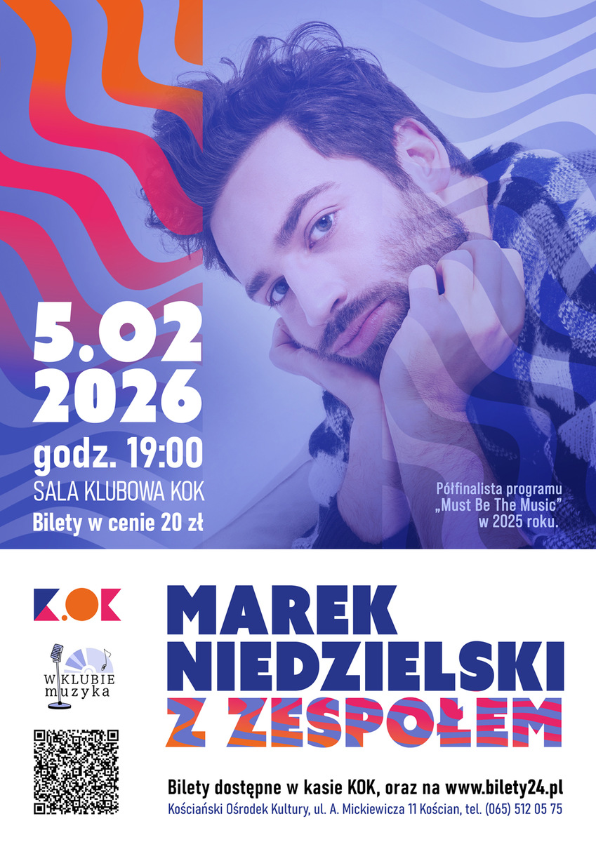 Klubowa scena Kościańskiego Ośrodka Kultury wypełni się dźwiękiem, który pulsuje emocjami. Marek Niedzielski z zespołem zaprasza na koncert indie-popowy pełen napięcia, przestrzeni i melodii, które w pamięci zostają na długo.