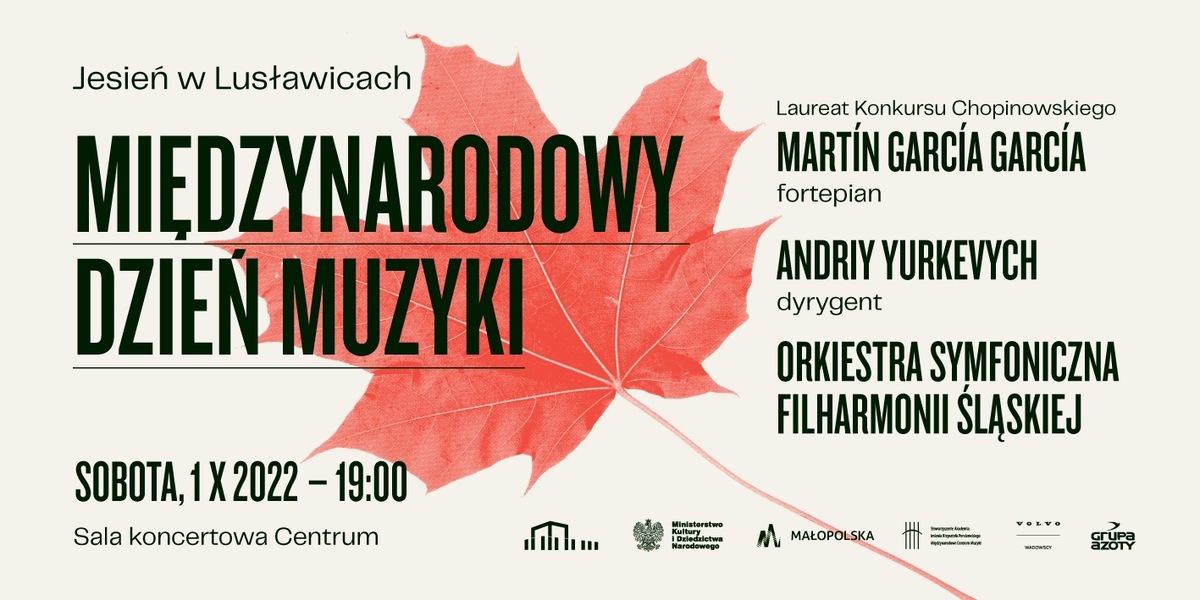 Koncert rozpocznie Uwertura Rosamunde Franza Schuberta w wykonaniu Orkiestry Symfonicznej Filharmonii Śląskiej pod dyrekcją Andriya Yurkevycha. Laureata III nagrody XVIII Międzynarodowego Konkursu Pianistycznego im. Fryderyka Chopina usłyszymy w partii solowej II Koncertu fortepianowego f-moll op. 21 Fryderyka Chopina. Właśnie ten utwór hiszpański pianista wykonał w rundzie finałowej konkursu. Martín García García otrzymał wtedy także nagrodę za najlepsze wykonanie koncertu. Na zakończenie Międzynarodowego Dnia Muzyki w Lusławicach zabrzmi III Symfonia Es-dur op. 97 Reńska Roberta Schumanna.