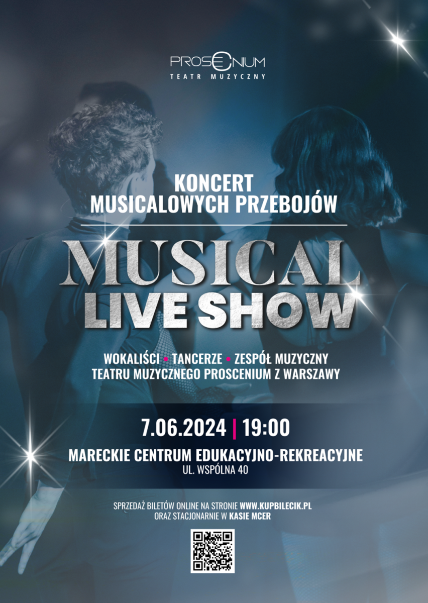 Zapraszamy na koncert musicalowych przebojów! Musical Live Show to dwie godziny muzyki na najwyższym poziomie, w trakcie którego widzowie usłyszą największe musicalowe hity w wykonaniu artystów Teatru Muzycznego Proscenium z Warszawy.