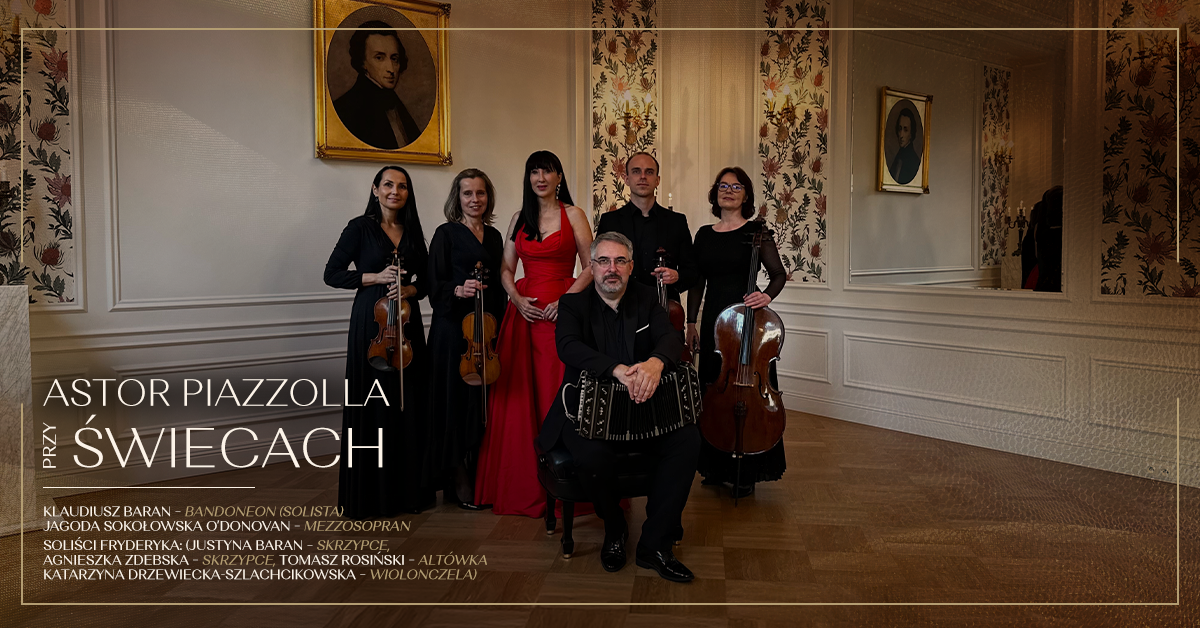 Przy blasku świec, w nastrojowych wnętrzach Sali Koncertowej Fryderyk, zabrzmi muzyka Astora Piazzolli – mistrza tanga nuevo, który połączył pasję i dramat tanga z wyrafinowaniem muzyki klasycznej i jazzowej. Wieczór przeniesie słuchaczy w świat pełen emocji, intensywnych rytmów i lirycznej melancholii, gdzie bandoneon, głos i kwartet smyczkowy splecioną się w opowieść o miłości, namiętności i tęsknocie. _________________________________________________________ By candlelight, in the intimate setting of the Fryderyk Concert Hall, the music of Astor Piazzolla will unfold – the genius of tango nuevo, who fused the passion and drama of tango with the sophistication of classical music and the freedom of jazz. The evening will immerse listeners in...