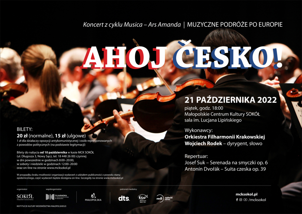 Musica – Ars Amanda Cykl koncertów symfonicznych dla młodzieży – ale nie tylko!, będący mozaiką stylów i form muzycznych. Wprowadza słuchaczy w świat muzyki od baroku do czasów współczesnych. Odbiorcy mają okazję poznać polskich dyrygentów i solistów, a koncerty uzupełniają prelekcje oraz foldery z informacjami o wykonawcach i omówieniem repertuaru. W sezonie artystycznym 2022/2023 koncerty z cyklu Musica - Ars Amanda przenosić będą słuchaczy w różne miejsca na świecie prezentując kulturę, tradycję oraz ciekawostki z różnych stron Europy. Wykonawcy: Orkiestra Filharmonii Krakowskiej Wojciech Rodek - dyrygent, słowo Serdecznie zapraszamy na Muzyczne Podróże po Europie!*******