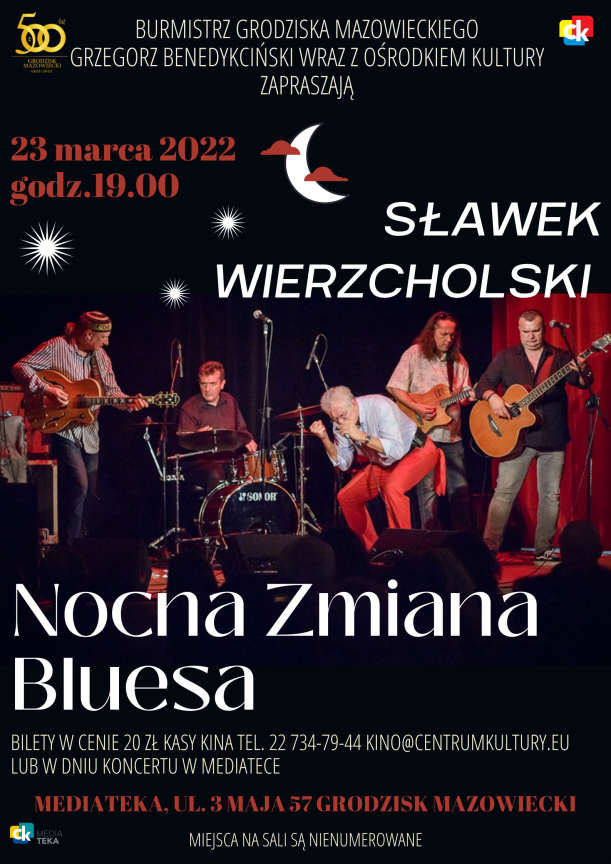 Sławek Wierzcholski i Nocna Zmiana Bluesa Najpopularniejszy polski wykonawca bluesa – Sławek Wierzcholski i stworzona przez niego Nocna Zmiana Bluesa w ciągu 40 lat nieprzerwanej działalności osiągnęli sukcesy, którymi można by obdzielić znacznie większe grono artystów! Dwadzieścia wydanych płyt, nagrania z amerykańskimi gwiazdami bluesa jak m.in. Charlie Musselwhite czy Louisiana Red, koncerty supportujace gwiazdy bluesa światowego formatu: B.B.King (Warszawa 1996) czy Blues Brothers (Norymberga 1989). Kilka tysięcy koncertów w Polsce i praktycznie w całej Europie, także w USA, a nawet w Zimbabwe! Choć zaczynali jako ortodoksyjni bluesmani, w trakcie ćwierćwiecza działalności, Sławek i jego zespół wykreowali własny, niepowtarzalny styl bazujący...