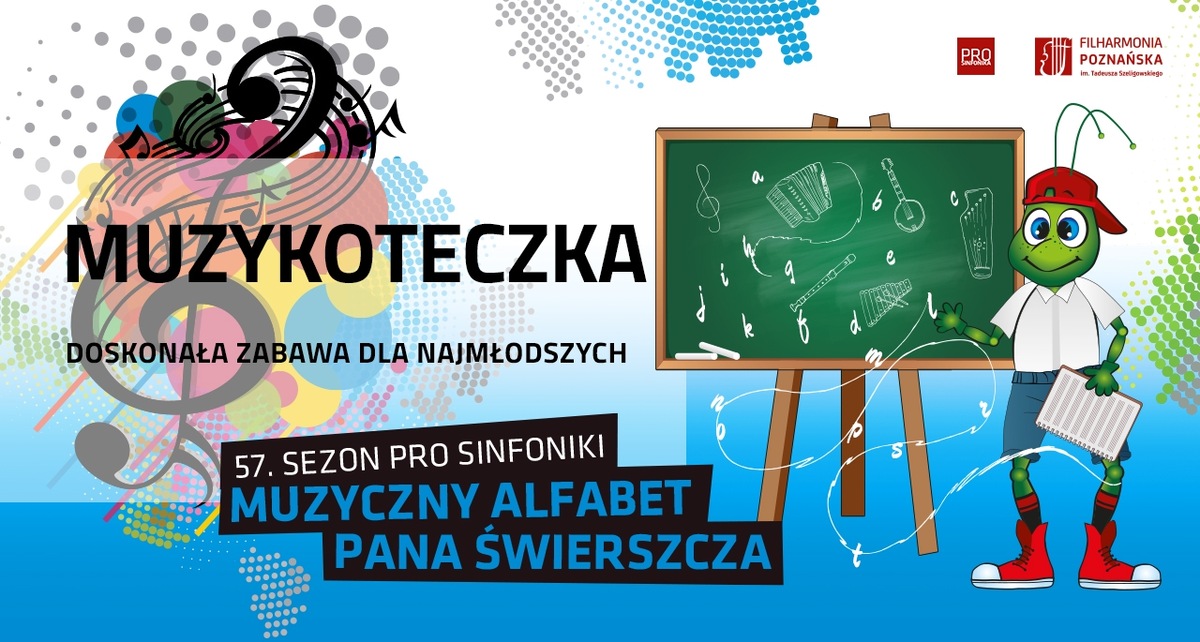 wydarzenie organizowane przez: Pro Sinfonika - Filharmonia Poznańska Elementarz Pro Sinfoniki zaczynamy od muzyki, Co z literą M na przedzie w alfabecie tym prym wiedzie. W sobotę, 12 pażdziernika, o godzinie 11:30, spotkajmy się tradycyjnie w Sali Lubrańskiego przy ul. Wieniawskiego 1 w Poznaniu, aby wraz z Panem Świerszczem zainaugurowac nowy sezon! Gotowi wyruszyć w kolejną, muzyczną podróż razem z nami? MUZYKOTECZKA – czyli Filharmonia dla MALUSZKA to cykl koncertów dedykowany najmłodszym odbiorcom, którzy rozpoczynają swoją przygodę z muzyką. Cykl ma charakter edukacyjny, a jego celem jest stopniowa i systematyczna nauka aktywnego słuchania, wypracowanie poczucia rytmu, rozbudzenie dziecięcej wyobraźni...