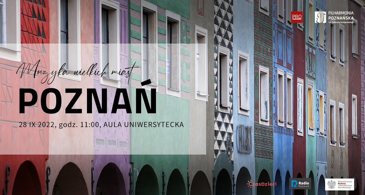Inauguracja 55. Sezonu Artystycznego Pro Sinfoniki - Filharmonii Poznańskiej Muzyka Wielkich Miast - POZNAŃ Muzyka Wielkich Miast to kontynuacja serii autorskich koncertów Pro Sinfoniki – Filharmonii Poznańskiej połączonych z prezentacją wizualną i omówieniem. wykonawcy: Wojciech NIEDZIÓŁKA – skrzypce Barbara ŻOŁNIERCZYK – skrzypce Agata ZAJĄC – dyrygent Orkiestra Filharmonii Poznańskiej w programie: Henryk Wieniawski, II Koncert skrzypcowy d-moll (fragmenty) Henryk Wieniawski, I Koncert skrzypcowy fis-moll o naszych koncertach: MUZYKOTEKA to sobotnie koncerty rodzinne, organizowane raz w miesiącu w Auli Uniwersyteckiej w Poznaniu. Dla małych i dużych miłośników muzyki, dla dawnych i nowych przyjaciół Pro Sinfoniki, dla znawców...