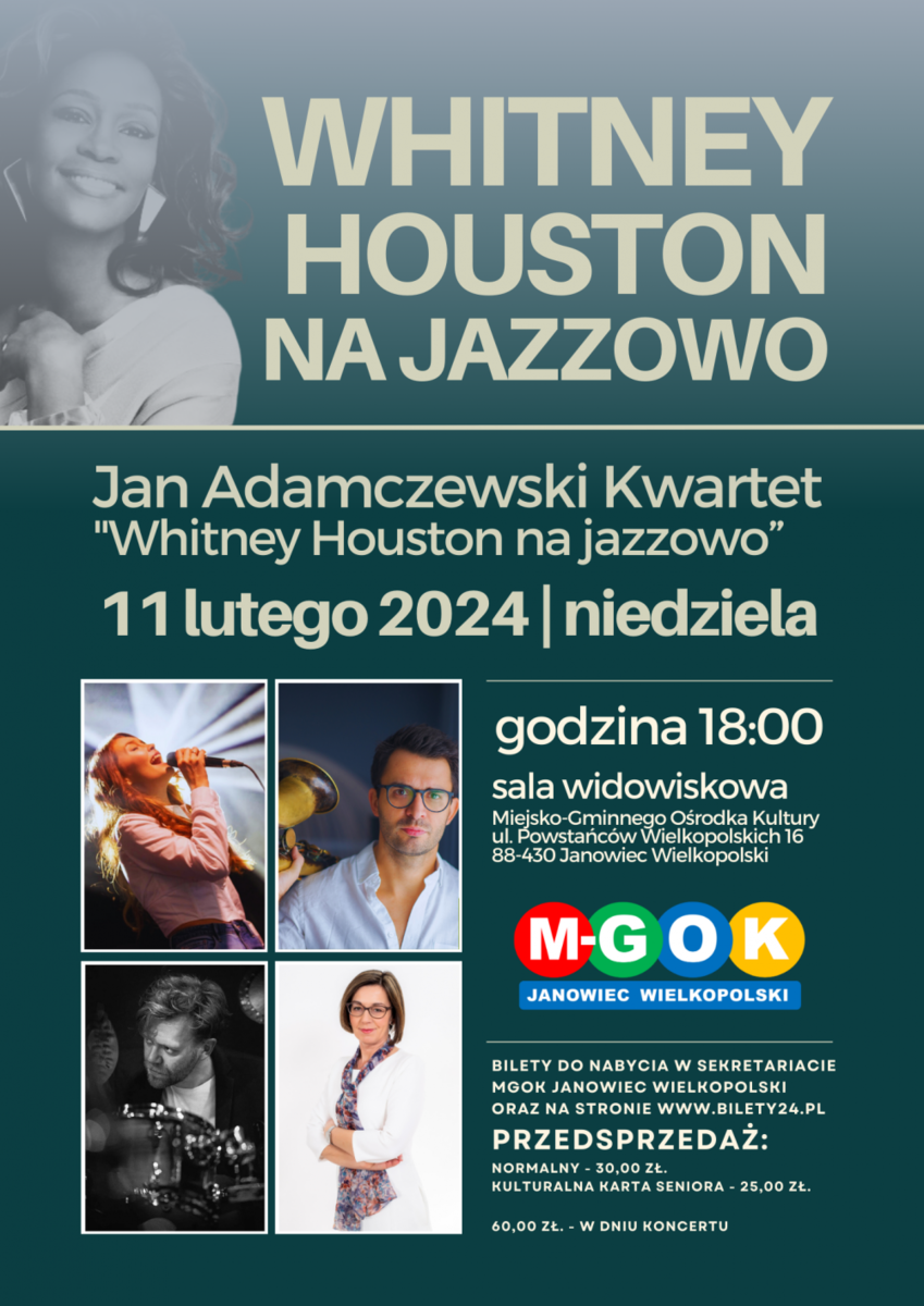 Jan Adamczewski Kwartet zaprasza Państwa na wyjątkowy wieczór, podczas którego będzie można usłyszeć najpiękniejszych utworów Whitney Houston w jazzowym aranżacjach.