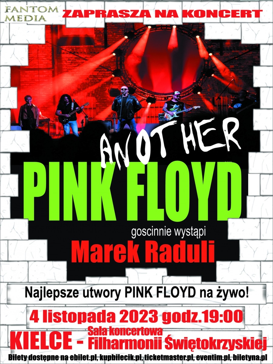 4 listopada 2023 w Sali Koncertowej Filharmonii Świętokrzyskiej przy ul.Żeromskiego 12 wystąpi zespół Another Pink Floyd, uznawany za jeden z najlepszych zespołów grających muzykę Floydów na żywo, a na kielecki koncert zaproszenie przyjął i wraz z muzykami Another gościnnie wystąpi Marek Raduli - bezdyskusyjnie najpiękniej brzmiący gitarzysta w Polsce, występujący w takich zespołach jak Budka Suflera, Bajm, Banda i Wanda