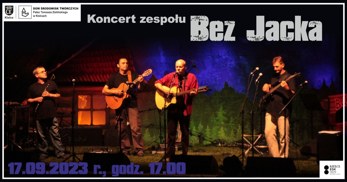 Wstęp: 30 zł (do 14.09.2023 r.), później 40 zł. Zespół „Bez Jacka” powstał w 1983 roku. Uprawia muzykę tzw. „środka”, pisząc muzykę do poezji Leśmiana, Pawlikowskiej-Jasnorzewskiej, Gałczyńskiego, Tuwima, Wołka, Kubiaka, a przede wszystkim do tekstów lidera tej grupy Zbigniewa Stefańskiego. Grupa zdobyła sławę i uznanie, zwłaszcza w środowisku studenckim, zdobywając nagrody na niemalże wszystkich festiwalach tego gatunku: „Piosenki Studenckiej” – Kraków, „Yapa” – Łódź, „Bazuna” – Gdańsk, „Giełda Piosenki” – Szklarska Poręba, „Śpiewające Żagle” – Szczecin, „Fama” – Świnoujście, „Włóczęga” – Zielona Góra oraz wielu innych. Korzenie zespołu „Bez Jacka” sięgają początku lat siedemdziesiątych, kiedy to trzej Bracia Stefańscy: Zbyszek, Jasiu...