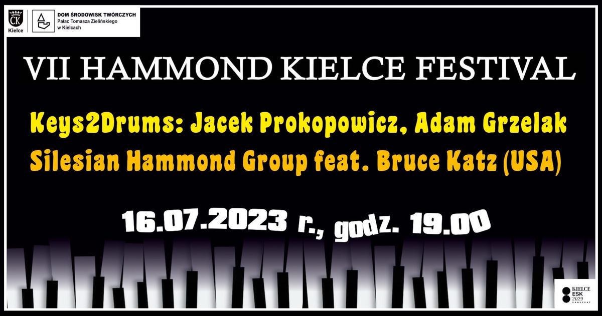 Więcej informacji: https://www.palacykzielinskiego.pl/374-vii-hammond-kielce-festival-keys2drums-oraz-silesian-hammond-group-feat-bruce-katz-usa
