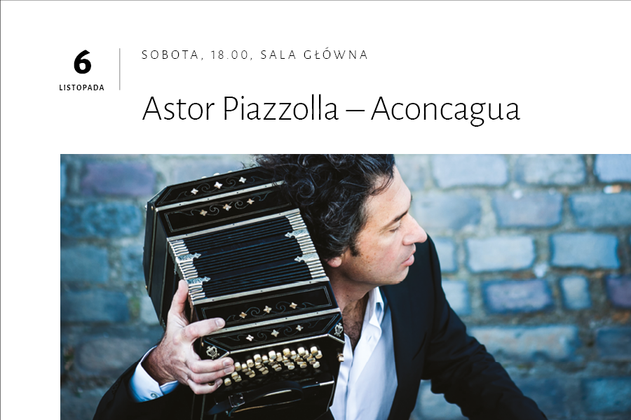 Swoich sił jako kompozytor próbuje także Juanjo Mosalini, a podczas koncertu NFM Orkiestry Leopoldinum zabrzmią dwa pełne inwencji utwory jego autorstwa – Cien años oraz Toma Toca. Z kolei Concierto para quinteto Astora Piazzolli, które również znalazło się w programie wieczoru, to dzieło pochodzące z noszącego taki sam tytuł albumu z 1971 roku. Przepojone jest ono typową dla Argentyńczyka melancholią, nadającą jego muzyce tak charakterystycznego wyrazu. Wieczór zwieńczy wykonanie wirtuozowskiego, pełnego pasji Koncertu na bandoneon i orkiestrę „Aconcagua”, który jest jednym z najbardziej znanych utworów Piazzolli. To dzieło o niezwykłej intensywności emocjonalnej, łączące żar i z momentami wielkiej nostalgii i tęsknoty.