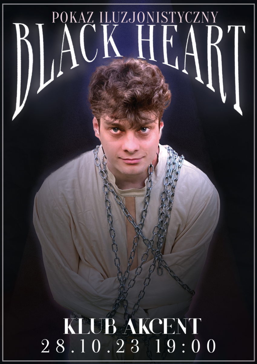 David Olesh: spektakl iluzjonistyczny „Black Heart” Najwyższej jakości pokaz iluzji, połączony z interaktywną rozrywką to gwarancja niezapomnianych magicznych wspomnień. Odkryj tajemniczy świat iluzji i doświadcz magii w jej najczystszej formie. Ucieczka z kaftanu bezpieczeństwa i przewidywanie przyszłości to tylko część repertuaru, która wywoła pytanie: czy to iluzja czy już prawdziwa magia? Dzięki swojemu dziesięcioletniemu doświadczeniu, David przeniesie publiczność na krawędź fotela, a jednocześnie zapewni pełne bezpieczeństwo. Zalecany wiek uczestników: 12+*******
