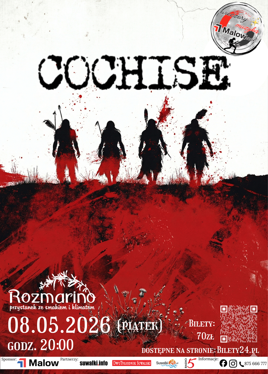 Zespół Cochise, na którego czele stoi charyzmatyczny wokalista Paweł Małaszyński, od ponad dwóch dekad konsekwentnie podąża własną muzyczną ścieżką. Ich twórczość to wyraźny ukłon w stronę lat 90. i legendarnych brzmień rodem z Seattle. W ich muzyce znajdziecie wszystko to, co w rocku najbardziej pociągające: brudne, przesterowane gitary, ciężką, pulsującą sekcję rytmiczną, intrygujące melodie oraz pełne emocji, osobiste teksty.