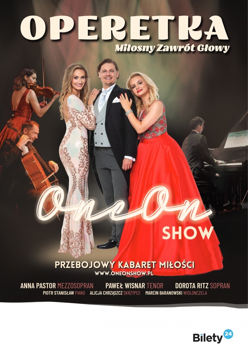 „Operetka, Miłosny Zawrót Głowy" grupy artystycznej OneOn to muzyczne SHOW w rytmie wiedeńskiego walca, węgierskiego czardasza i przebojowego musicalu. Akcja koncertu ukazuje barwne aspekty relacji damsko-męskich. Kochankowie, skonfliktowani małżonkowie, łowczynie posagów, czy tropiciele damskich wdzięków to tylko nieliczni bohaterowie OneOnowego show. Królować będzie kokieteryjna, ekscytująca, liryczna,