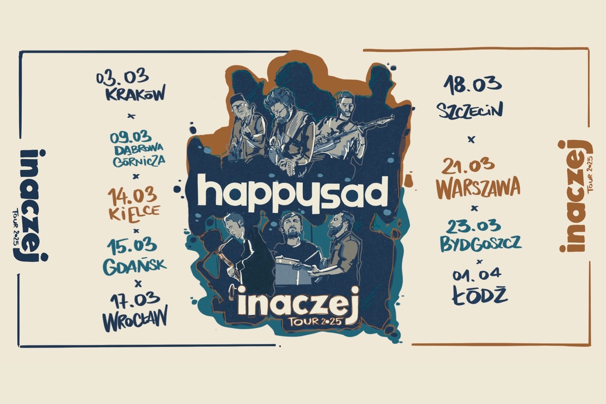 Druga odsłona wyjątkowej trasy Happysad rusza już w marcu 2024! Pod hasłem Happysad Inaczej w marcu 2023 roku zespół Happysad wyruszył w wyjątkową trasę prezentując na niej specjalnie dobrany repertuar z gościnnym udziałem sekcji dętej i w półakustycznym, cichym anturażu. Druga odsłona tej trasy rusza w marcu 2024 roku, a zespół zapowiada w związku z nią 10 niecodziennych koncertów, także z udziałem sekcji dętej, w przyjemnej, intymnej atmosferze specjalnie dobranych pod tym kątem sal koncertowych. Słuchacze liczyć będą mogli na przekrojowy materiał skupiony wokół spokojniejszych, delikatnych utworów, a każdy z nich, w większym lub mniejszym stopniu, dzięki ich przearanżowaniu, uzyska nową, może nawet lepszą i ciekawszą odsłonę. Fani obecni...