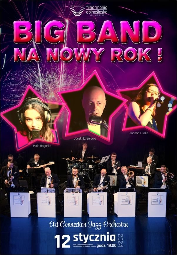 Art Connection Jazz Orchestra, czyli potęga blachy kontra sekcja rytmiczna. Zespół tworzą jeleniogórscy muzycy, którzy przez wiele lat brali udział w różnych projektach muzycznych od klasyki po jazz. Pomysłodawcą i kierownikiem zespołu jest Artur Nowak absolwent Instytutu Jazzu i Muzyki Estradowej w Poznaniu oraz etatowy puzonista naszej filharmonii. Doświadczenie artystyczne muzyków pozwoliło stworzyć poruszający się w różnych stylach wykonawczych zespół, dostarczający słuchaczom fantastycznej mieszanki muzycznych hitów. W programie pojawią się znane kolędy i pastorałki specjalnie przygotowane na tą okazję. Obok innych znakomitych kompozycji usłyszymy Różową panterą najsłynniejszy przebój Henry’ego Manciniego. Soliści koncertu: Joanna Liszka...