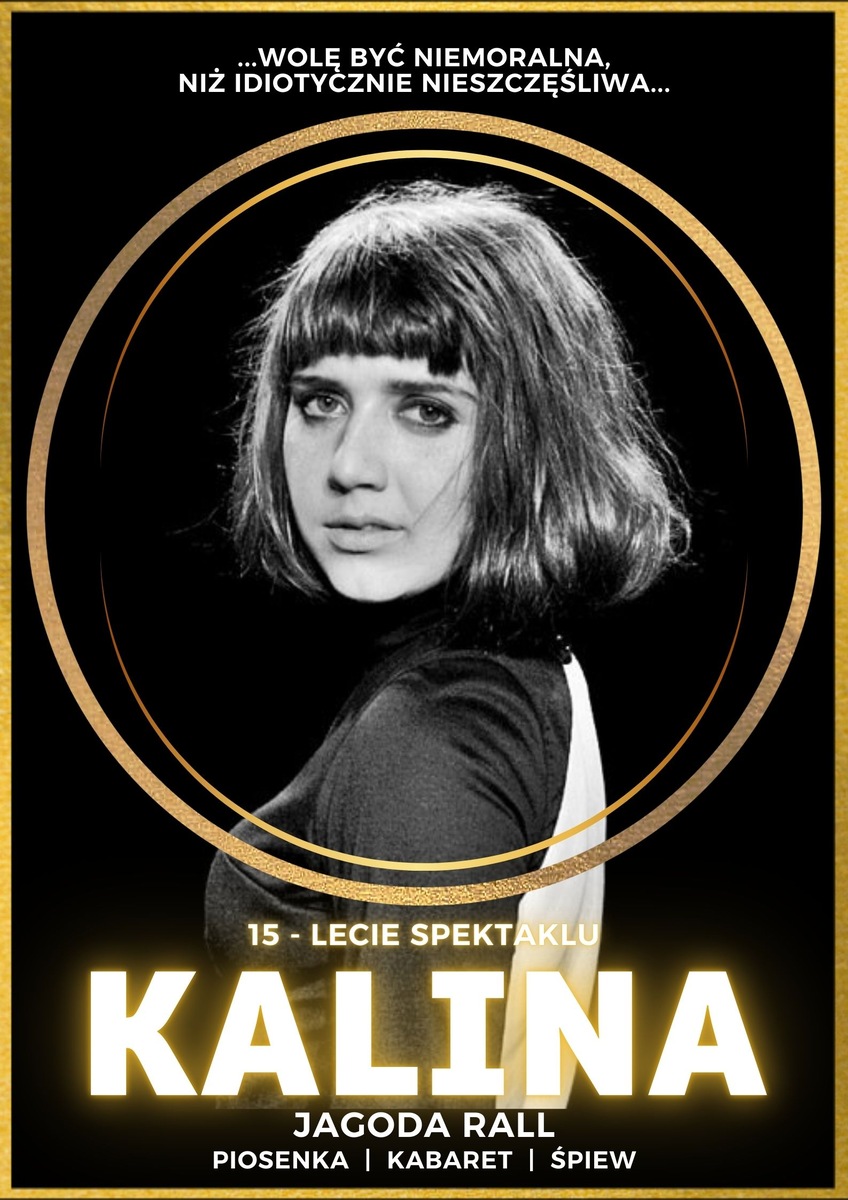 To wzruszająca, błyskotliwa opowieść o Divie PRL’u ukazująca wszystkie kolory tytułowej Kaliny Jędrusik. Kalina uwodzi. Kalina rozśmiesza. Kalina porusza. Kalina jak żywa zaprosi Państwa do swojego świata, zaczaruje i otuli swoim głosem. W spektaklu usłyszą Państwo znane piosenki, które niegdyś przed laty wykonywała sama Kalina Jędrusik takie jak „Mój pierwszy bal”, „Z kim tak Ci będzie źle jak ze mną” czy „Ciepła wdówka na zimę”, a także anegdoty z życia Artystki. Będą Państwo nie tylko oglądać spektakl z pozycji widza, ale zostaną Państwo wciągnięci do kalinowego świata, by stać się częścią tej historii. Kalina przekracza symboliczną czwartą ścianę i dosłownie wciąga Widza na scenę!