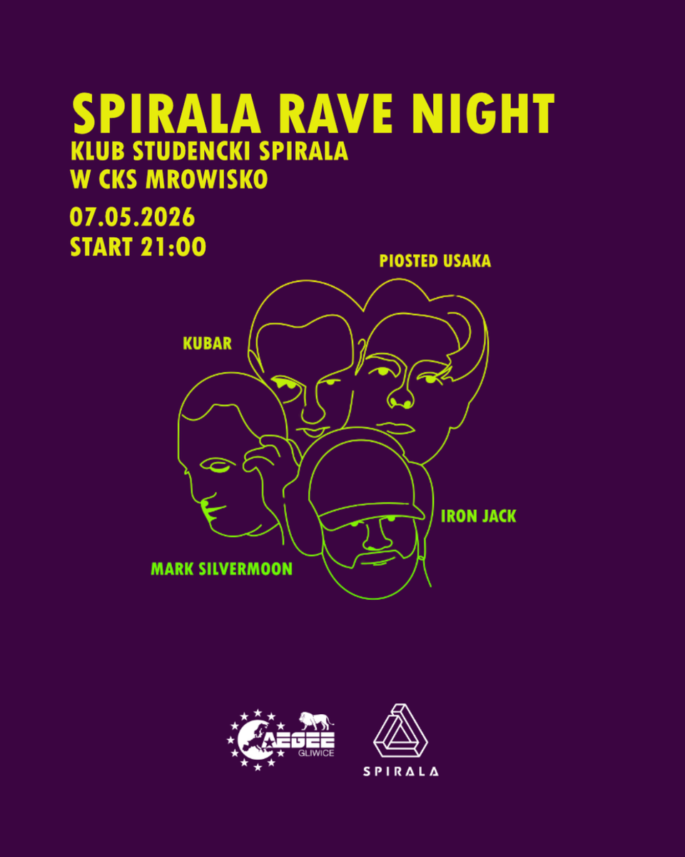 Przygotujcie się na noc pełną energii oraz dobrej muzyki, która nie będzie zwalniać tempa. Tego wieczoru Spirala zamieni się w rave’ową przestrzeń, gdzie spotkają się studenci, znajomi i wszyscy spragnieni dobrej imprezy.