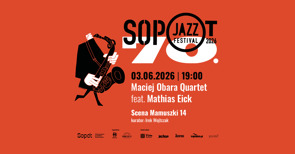 W ramach Sopot Jazz Festival 2026, scena Mamuszki 14 wypełni dźwiękowa opowieść o wolności i wzajemnym zaufaniu. Przed nami Maciej Obara Quartet w wyjątkowej, rozszerzonej odsłonie z gościnnym udziałem norweskiego trębacza, Mathiasa Eicka. Maciej Obara (saksofon altowy) i Dominik Wania (fortepian) to duet, który od lat przesuwa granice polskiego jazzu. Razem z norweską sekcją rytmiczną – Ole Mortenem Våganem i Gardem Nilssenem – stworzyli kwartet niebywały. Teraz ten skład otwiera nowy rozdział. Dołączenie Mathiasa Eicka, jednego z najbardziej lirycznych głosów europejskiej trąbki, to nie tylko zmiana instrumentarium, to nowa jakość i poszerzenie brzmieniowego świata zespołu. To fascynujący dialog między środkowoeuropejską intensywnością Obary...