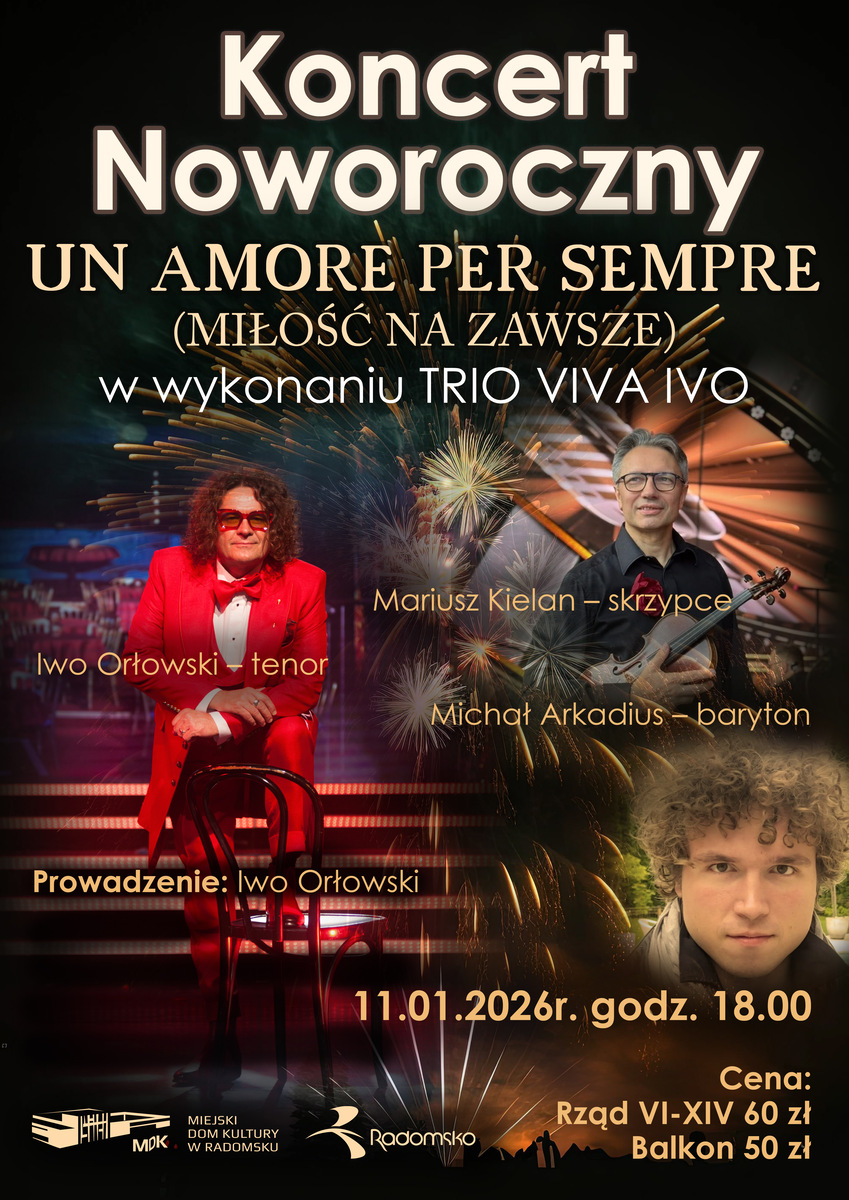 Koncert Noworoczny z udziałem Iwo Orłowskiego to propozycja dla wszystkich, którzy cenią wysoki poziom artystyczny, emocje i elegancję, a także dla tych, którzy pragną rozpocząć nowy rok w atmosferze piękna i inspiracji.