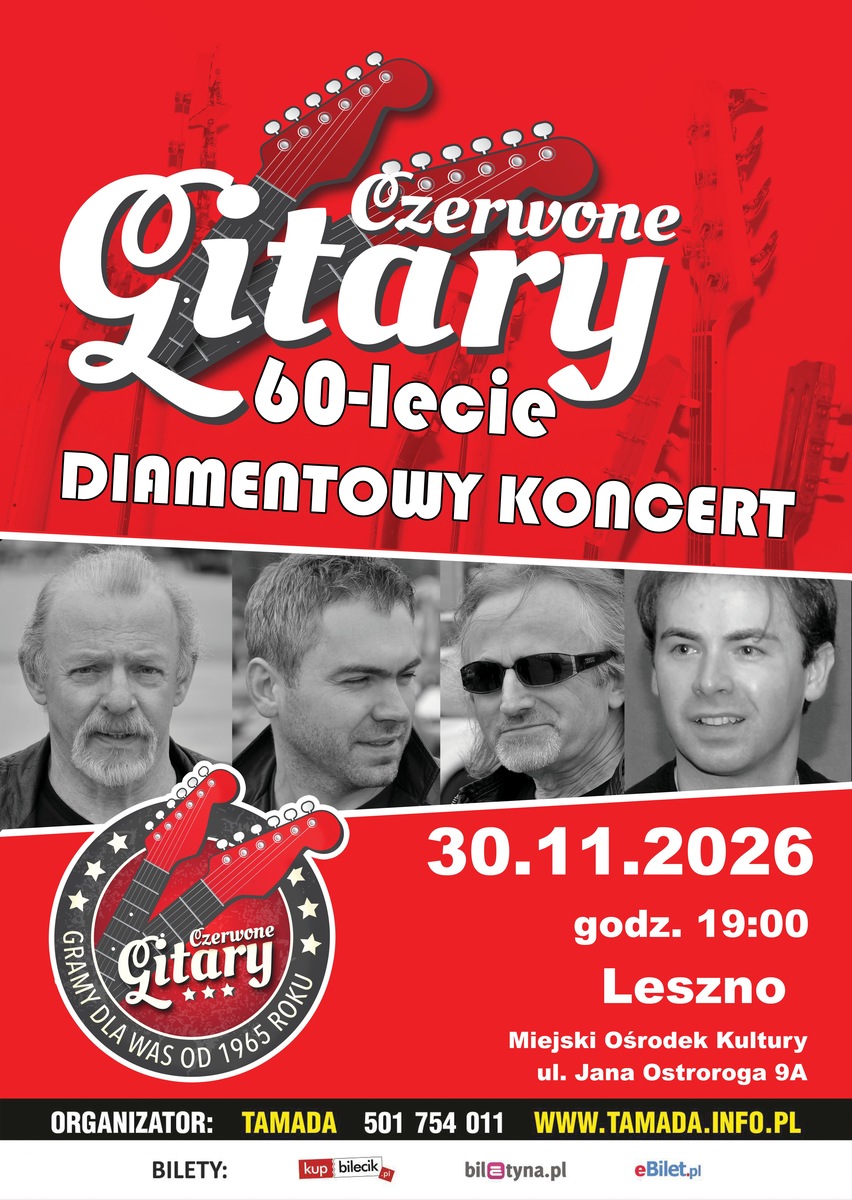 Czerwone Gitary należą do grona nielicznych zjawisk muzycznych, które stały się klasyką polskiej kultury popularnej. Diamentowy Koncert będzie przypomnieniem największych przebojów ze wszystkich płyt Zespołu. Ta (dwugodzinna) muzyczna wędrówka z niezapomnianymi hitami i nowymi piosenkami Zespołu, będzie gwarancją wspomnień, wzruszeń i zapowiedzią fantastycznej integracji widzów z Zespołem. Kilkudziesięcioletnia, konsekwentna praca Czerwonych Gitar i umiejętności odmłodzonego składu Czerwonych Gitar zostały docenione na Jubileuszowej trasie 55-lecia, która odniosła olbrzymi sukces. Do zobaczenia na Diamentowej trasie koncertowej, 60-lecia Zespołu, już od 3 stycznia 2025!