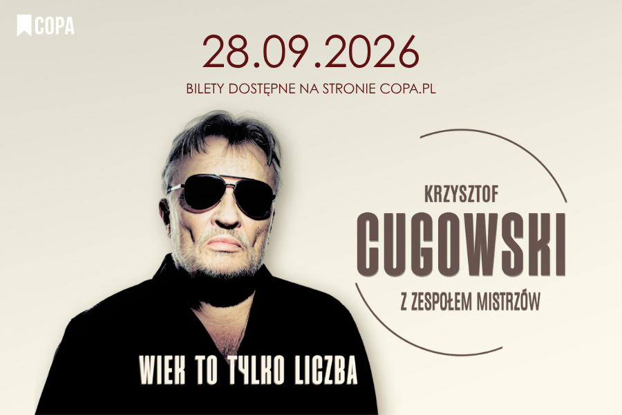 Krzysztof Cugowski wraca na scenę! „Wiek to tylko liczba" to energia, charyzma i ponadczasowe hity w wykonaniu legendy z Zespołem Mistrzów. Nie przegap trasy pełnej emocji i muzyki, która łączy pokolenia! Krzysztof Cugowski – Wiek to tylko liczba Artysta kompletny, legenda polskiej sceny i głos kilku pokoleń rusza w 2026 roku w kolejną trasę. Hasło przewodnie nie jest kokieterią – to program działania: energia, rzemiosło i charyzma, które od ponad pięciu dekad trzymają publiczność w napięciu. I trudno nie przyznać mu racji, w końcu Krzysztof Cugowski z powodzeniem przemierza polską scenę muzyczną od ponad pięciu dekad. Współzałożyciel Budki Suflera, legendarny głos pokoleń, ma w swoim dorobku setki utworów, dziesiątki płyt i wielkie muzyczne...