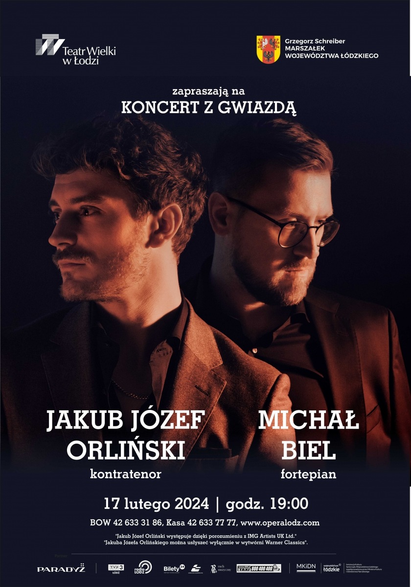 JAKUB JÓZEF ORLIŃSKI Światowa gwiazda w Łodzi! 17 lutego 2024 Takiej okazji nie można przegapić! Aż trudno uwierzyć, że tak młody Artysta w tak krótkim czasie zachwycił publiczność najsłynniejszych sal operowych i koncertowych świata - Metropolitan Opera, Carnegie Hall, Lincoln Center w Nowym Jorku, Covent Garden w Londynie, San Francisco Opera i wiele innych, w których publiczność z aplauzem przyjmuje wokalne popisy śpiewaka. Jakub Józef Orliński dysponując wyjątkowym głosem (kontratenor!) odnajduje się równie wspaniale w operze jak i w repertuarze pieśniarskim, co będą mogli Państwo sprawdzić osobiście. Podczas koncertu w Teatrze Wielkim w Łodzi śpiewak zaprezentuje się Państwu w kompozycjach m.in. Johanna Fuxa, Henryka Czyża, Henry’ego...