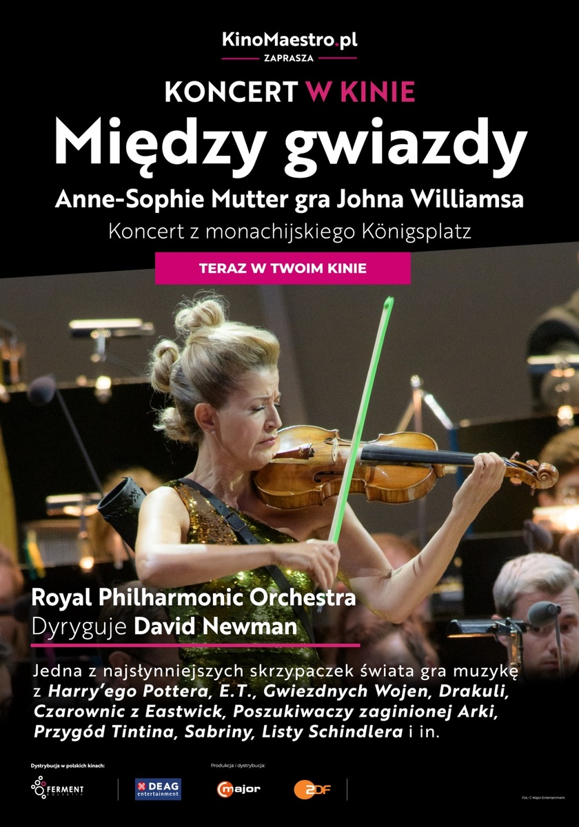 "Między gwiazdy. Anne-Sophie Mutter gra Johna Williamsa" Jedna z najsłynniejszych klasycznych skrzypaczek świata gra muzykę z "Harry’ego Pottera", "Gwiezdnych Wojen", "E.T"., "Drakuli", "Czarownic z Eastwick", "Indiany Jonesa i poszukiwaczy zaginionej Arki", "Listy Schindlera" i innych filmowych hitów kompozytora Johna Williamsa "Między gwiazdy" to koncert legendarnej skrzypaczki Anne Sophie-Mutter, kilkukrotnej laureatki nagrody Grammy, z uznaną na całym świecie Royal Philharmonic Orchestra. W trakcie wieczoru usłyszymy najsłynniejsze utwory pięciokrotnego zdobywcy Oscara – Johna Williamsa. Ten amerykański kompozytor, głównie muzyki filmowej, dyrygent i pianista, stworzył muzykę do prawie stu filmów. Najczęściej współpracuje z George’em Lucasem...