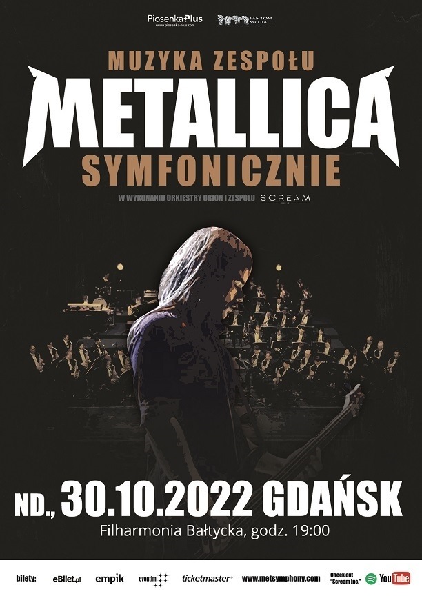 W roku 2022 na kolejne koncerty powróci do Polski wyjątkowy projekt – pod szyldem “Muzyka zespołu Metallica symfonicznie” wystąpi SCREAM INC. jeden z najlepszych coverbandów Metallica na świecie. Towarzyszyć im będzie orkiestra symfoniczna ‘Orion’. Na koncertach usłyszymy największe przeboje Metallica w symfonicznych aranżacjach wykonanych tak jak na słynnej płycie “Metallica S&M”. To blisko dwie godziny klasyki rocka/metalu w niezwykłym wydaniu! 30. Po doskonale przyjętych trzech trasach koncertowych, 30 października 2022 muzycy wystąpią ponownie w Filharmonii Bałtyckiej w Gdańsku przy ul.Ołowianka 1. Początek koncertu o 19:00 Scream Inc. istnieją od 2008 r i osiągnęli wielki sukces, stając się najbardziej znaczącym tribute-band’em z Europy...