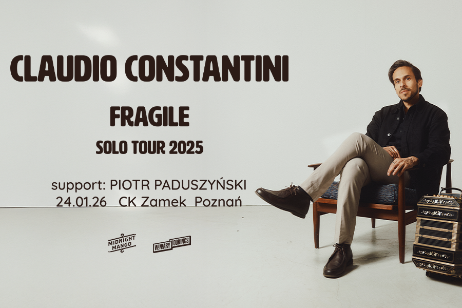 24.01.2025 / CK ZAMEK / POZNAŃ 19:00 DRZWI 19:40 PIOTR PADUSZYŃSKI 20:20 CLAUDIO CONSTANTINI Pianista, bandoneonista i kompozytor - Claudio Constantini, wystąpi w Polsce w ramach trasy „Fragile - Solo Tour 2025”! Już 24 stycznia zagra w poznańskim CK Zamek. Pochodzący z Peru Constantini, zdobył międzynarodowe uznanie, występując na Concertgebouw w Amsterdamie, Berliner Philharmonie czy Musikverein w Wiedniu. Otrzymał również wiele nagród i nominację do Latin Grammy w 2019 roku. Jego stylistyczna wszechstronność łączy korzenie muzyki klasycznej z pasją do muzyki latynoamerykańskiej, która jest niewątpliwie jednym z jego cech rozpoznawalnych. Sam Claudio w tym roku nie próżnuje - pod koniec sierpnia wraz z Yehezkelem Razem wydał minialbum...