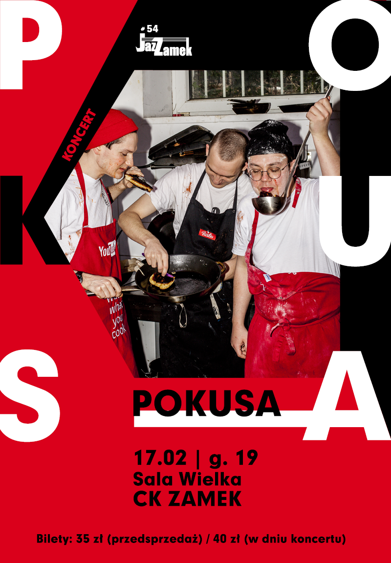 17.02 JAZZAMEK #54 g. 19 | Pokusa – koncert Sala Wielka / bilety: 35 zł (przedsprzedaż), 40 zł (w dniu koncertu) Trio Natan Kryszk (saksofon barytonowy), Tymek Bryndal (bas), Teo Olter (perkusja) istnieje od 2012 roku. Wtedy to zespół z rozpędem przebił się na polską scenę jazzową podczas koncertu w Pardon, To Tu na festiwalu Niewinni Czarodzieje. Pokusa wydała pierwszą płytę pt. „ZERO” w 2013 roku w Casablanca Studios, drugą „EINZ” w 2018 roku w LADO ABC. Z tą płytą zespół zagrał trasę w Niemczech i Belgii, wiele koncertów w Polsce, a także na festiwalach: OFF Festiwal, Jazz Jantar, Jazz nad Odrą, Inne Brzmienia czy Unsound. W 2020 roku premierę miała kaseta wydana przez DREAMLAND SYNDICATE; pierwsza odsłona cyklu wydawniczego „Live at Pogłos”....
