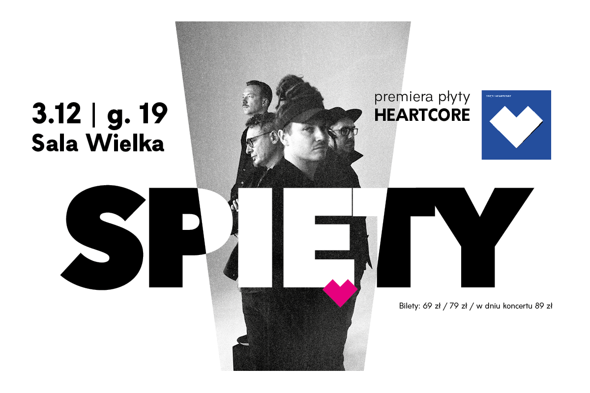 3.12 SPIĘTY g. 19 | Premiera płyty "Heartcore" Sala Wielka / bilety: I pula – 69 zł / II pula – 79 zł / w dniu koncertu – 89 zł Spięty – koncert z nową płytą! Koncert odbędzie się w ramach trasy koncertowej promującej "Heartcore". To trzeci solowy album Huberta „Spiętego” Dobaczewskiego, gitarzysty, wokalisty i autora tekstów znanego z wieloletnich występów z zespołem LAO CHE. Po płytach „Antyszanty” i "Black Mental" Spięty po raz kolejny wyznaczył sobie nowy muzyczny i tekstowy kierunek, który może zaskoczyć swoją intymnością niejednego słuchacza. Premiera nowej płyty odbyła się w październiku 2023 roku. Artysta koncertuje z zespołem, w skład którego wchodzą uznani muzycy sceny niezależnej. Spięty – wokal, gitara Bartek Kapsa – perkusja,...