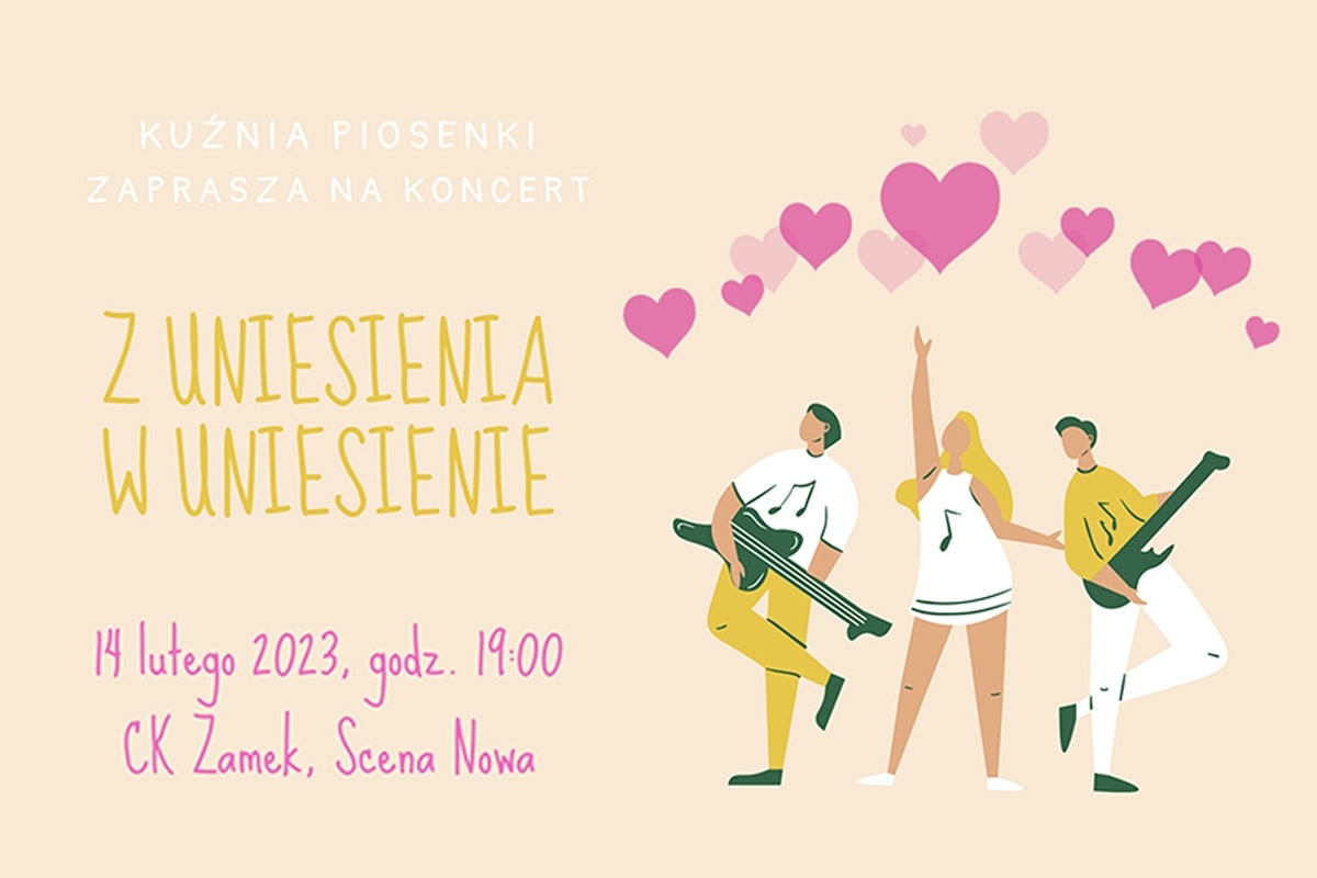 Z UNIESIENIA W UNIESIENIE / Koncert w wykonaniu artystów związanych z Kuźnią Piosenki MIEJSCE: SCENA NOWA Godzina: 19.00 Data: 14.02.2023 Cena: 5 zł Artyści z Kuźni Piosenki zaprezentują się w różnorodnym stylistycznie walentynkowym repertuarze: od Kabaretu Starszych Panów po standardy jazzowe, z towarzyszeniem fortepianu a także trąbki. Zapraszamy serdecznie!*******
