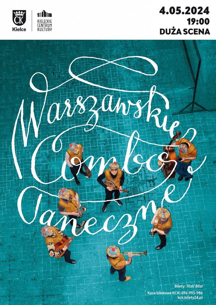 Kieleckie Centrum Kultury zaprasza na wyjątkowy koncert Warszawskiego Combo Tanecznego oraz potańcówkę w rytmie tanga. WARSZAWSKIE COMBO TANECZNE W SKŁADZIE: Jan Emil Młynarski – śpiew/bandżola/ Piotr Zabrodzki – śpiew/banjo Anna Bojara – piła Karol Szczubełek- gitara Tomasz Duda – baryton sax/klarnet Maurycy Idzikowski- trąbka Wojtek Traczyk – kontrabas Postanowili ocalić od zapomnienia piękne piosenki, prezentując je we współczesnym brzmieniu i aranżacjach bliskich oryginałom. Repertuar Warszawskiego Combo Tanecznego to w przeważającej mierze piosenki przedwojenne, które 80 i więcej lat temu bawiły i wzruszały publiczność na rewiach, dansingach, a także na stołecznych ulicach i podwórkach. Zespół narodził się spontanicznie, a za...
