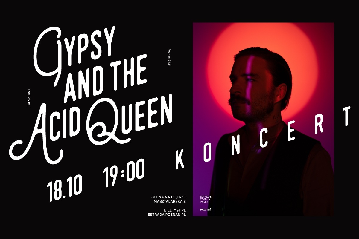 Gypsy and the Acid Queen w Scenie na Piętrze Miejsce: Scena na Piętrze, ul. Masztalarska 8a, Poznań Data: 18.10.2024, godz. 19.00 Bilety: - 40 zł (do 30 września) - 50 zł (od 1 października do 17 października) - 60 zł (w dniu koncertu) Gypsy and the Acid Queen to pseudonim Kuby Jaworskiego songwritera, multiinstrumentalisty, wokalisty i producenta z Krakowa. Kuba ma na swoim koncie dwie długogrające płyty: „Gypsy And The Acid Queen" z 2016 roku oraz „Dni miłości, nowe cudów" z 2019 roku. W 2021 roku ukazała się EP zatytułowana „ULTRAFIOLET”. Najnowsza płyta „Wyspy" została wydana wiosną 2023 r. Zasłużoną rozpoznawalność przyniosła mu już pierwsza płyta. To psychodeliczno-bluesowy klimat końca lat 60. Melodyjny, gitarowy, wpadający w...