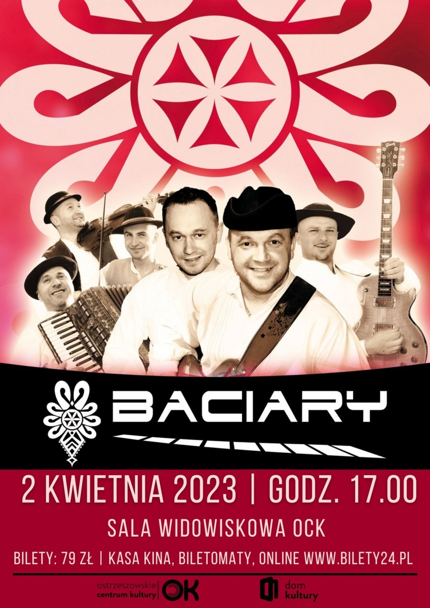 Zapraszamy na wieczór przepełniony energią spod samiuśkich Tater! BACIARY - zespół który powstał na Podhalu w 2002 roku, założyli go Andrzej i Janusz Body i natychmiast zyskał sławę, dzięki swojemu nowoczesnemu podejściu do grania, czasami już zapomnianych, melodii śpiewanych dawno temu przez naszych dziadków czy rodziców. Skład zespołu zmieniał się na przestrzeni lat. Do najbardziej znanych i lubianych utworów należą: "Żyje się raz", "Oczy zielone", "Nic do stracenia", "Jak się bawią ludzie". Trochę popa, rocka, biesiady, trochę disco polo, trochę muzycki na góralską nutę z charakterystycznym góralskim dialektem, hej! Ciekawe połączenia i właśnie to oryginalne podejście do muzyki tanecznej sprawiły, że muzycy osiągnęli niebywały sukces. Będzie...