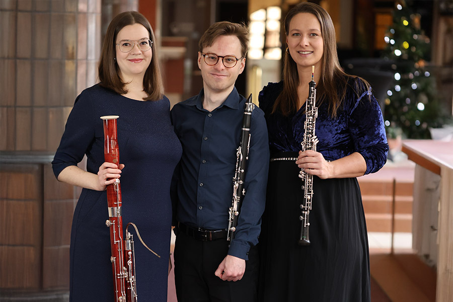 Zapraszamy na wyjątkowy wieczór kameralny, który da nam możliwość doświadczenia różnorodności brzmienia instrumentów dętych drewnianych. Klasyczny wdzięk Divertimenta B-dur nr 2 Wolfganga Amadeusa Mozarta, pełen lekkości i wiedeńskiej elegancji, wprowadzi nas w świat harmonii i zręcznych dialogów instrumentów a także będzie świetnym punktem wyjścia do podróży przez muzykę XX wieku. Trio na obój, fagot i klarnet Antoniego Szałowskiego zachwyca energią i świeżością, ukazując pełnię możliwości tych instrumentów. Następnie zabrzmi Suite pour Trio d’Anches Aleksandra Tansmana. Ten polski kompozytor, znany z neoklasycznego stylu, stworzył suitę pełną subtelności, humoru i charakterystycznych melodii. Zwieńczeniem wieczoru będzie Cinq Pièces en trio Jacques’a Iberta. Francuski mistrz orkiestracji i formy stworzył pięć krótkich, ale niezwykle barwnych i pełnych fantazji utworów, ukazując pełną paletę emocji i technicznych możliwości tria stroikowego.