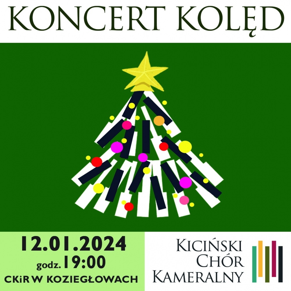 KOLĘDY W WYKONANIU KICIŃSKIEGO CHÓRU KAMERALNEGO Kiciński Chór Kameralny pod dyrekcją Antoniny Pedrycz, działający przy Gminnym Ośrodku Kultury Sokół, ma przyjemność zaprosić mieszkańców Gminy Czerwonak na kolejny już koncert, który odbędzie się 12 stycznia o godzinie 19:00 w Centrum Kultury i Rekreacji w Koziegłowach. Czas Świąt Bożego Narodzenia sprzyja kolędowaniu. Zaprezentujemy publiczności polskie kolędy oraz znane i lubiane pastorałki angielskojęzyczne. Liczymy, że przyjmiecie Państwo zaproszenie do wspólnego śpiewania. Już teraz pragniemy Państwu złożyć życzenia świąteczne oraz życzenia pomyślności w Nowym Roku. Wejściówki w cenie 10,00 zł będą dostępne od 02.01.2024 w siedzibie GOK Sokół, w Centrum Kultury i Rekreacji w Koziegłowach...