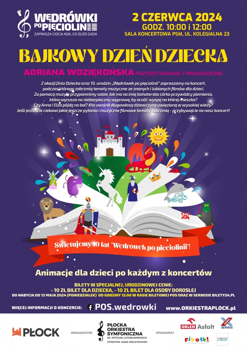 Z okazji Dnia Dziecka oraz 10. urodzin „Wędrówek po pięciolinii” zapraszamy na koncert, podczas którego zabrzmią tematy muzyczne ze znanych i lubianych filmów dla dzieci. Za pomocą muzyki przypomnimy sobie: Jak ma na imię bohaterska córka przywódcy plemienia, która wyrusza na niebezpieczną wyprawę, by ocalić wyspę, na której mieszka? Czy Anna i Elza pójdą na bal? Kto uwolnił długowłosą dziewczynę uwięzioną w wysokiej wieży? Jeśli jesteście ciekawi jakie jeszcze pytania i muzyczne filmowe tematy zabrzmią - przybywajcie na nasz koncert!