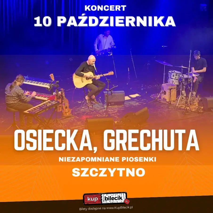 Zapraszamy na koncert poświęcony twórczości Agnieszki Osieckiej oraz Marka Grechuty. W programie znajdą się najwybitniejsze, najbardziej znane piosenki napisane przez Agnieszkę Osiecką: m.in. "Piosenka o okularnikach", "Niech żyje bal", "Kołysanka dla okruszka", "Kiedy mnie już nie będzie", "Co każdy chłopiec wiedzieć powinien oraz wybitne utwory wykonywane przez Marka Grechutę: "W dzikie wino zaplątani", "Niepewność", "Historia jednej podróży", "Korowód", "Świat w obłokach", "Dni których nie znamy" oraz wiele innych.