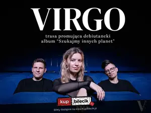 Jeśli szukasz koncertu, który zostanie w Tobie na długo - VIRGO zabierze Cię w niezapomnianą muzyczną podróż! Wejdź do świata pełnego emocji, w którym melancholia spotyka się z rockową energią, a subtelne ballady przeplatają się z alternatywnym brzmieniem. VIRGO to zespół, który w krótkim czasie zyskał serca słuchaczy - dzięki szczerości, autentyczności i muzyce, która porusza najczulsze struny duszy. Na scenie tworzą wyjątkową atmosferę - niepowtarzalny i charyzmatyczny wokal Małgorzaty Grabowskiej, ekspresyjne gitary Michała Oleńca i pełen energii rytm Mateusza Wyzińskiego sprawiają, że każdy koncert staje się intensywnym doświadczeniem, w którym trudno pozostać obojętnym. Ich debiutancki album "Szukajmy innych planet" to podróż przez 11 historii pełnych emocji i pasji. Podczas koncertu usłyszysz utwory, które łączą alternatywę, rock, dream pop i poetyckie ballady - a wszystko to w wykonaniu, które potrafi wzruszyć, zaskoczyć i porwać publiczność. Nie czekaj - kup bilet i wyrusz z VIRGO na poszukiwanie innych planet!