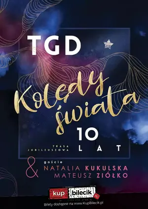 Zapraszamy na jubileuszowe, świąteczne koncerty, który łączą tradycję z nowoczesnością oraz polski klimat z muzyczną podróżą dookoła globu. Na scenie zespołowi TGD będzie wymiennie towarzyszyć dwoje wspaniałych gości: Natalia Kukulska, obdarzona charakterystyczną, ciepłą barwą głosu, oraz Mateusz Ziółko, jeden z najciekawszych męskich wokalistów na polskiej scenie.