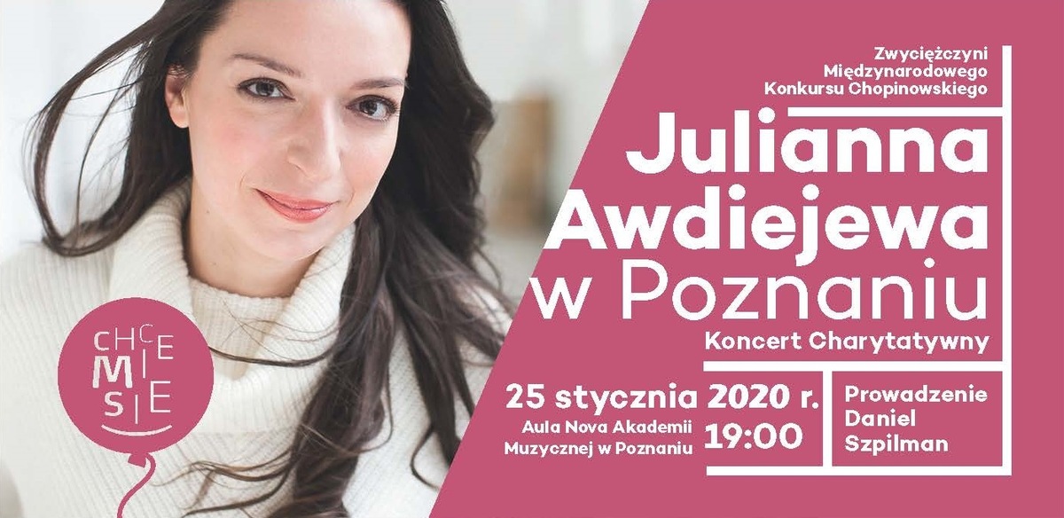 Staraniem poznańskiej Fundacji CHCEmisie już w styczniu wystąpi w Poznaniu światowej sławy pianistka Julianna Awdiejewa, zwyciężczyni Konkursu Chopinowskiego w 2010 roku. W sobotę 25 stycznia 2020 roku w Auli Novej poznańskiej Akademii Muzycznej artystka wystąpi z recitalem chopinowskim – usłyszymy mazurki, preludia, scherzo a także ulubiony przez melomanów Polonez As dur Op. 53. Koncert będzie miał charakter charytatywny: artystka zrezygnowała z honorarium by wszystkie pozyskane środki mogły zostać przeznaczone w całości na pomoc dla usamodzielniającej się młodzieży opuszczającej dom dziecka w Kołaczkowie pod Wrześnią. W programie również Wariacje na temat „Eroiki” Es-dur Op. 35 Beethovena. Artystka zgodziła się na udział w rozmowie na scenie – swego rodzaju music-show. Pianistka opowie o muzyce, o swoich przeżyciach, planach koncertowych i płytowych. Prowadzenie koncertu: Daniel Szpilman.