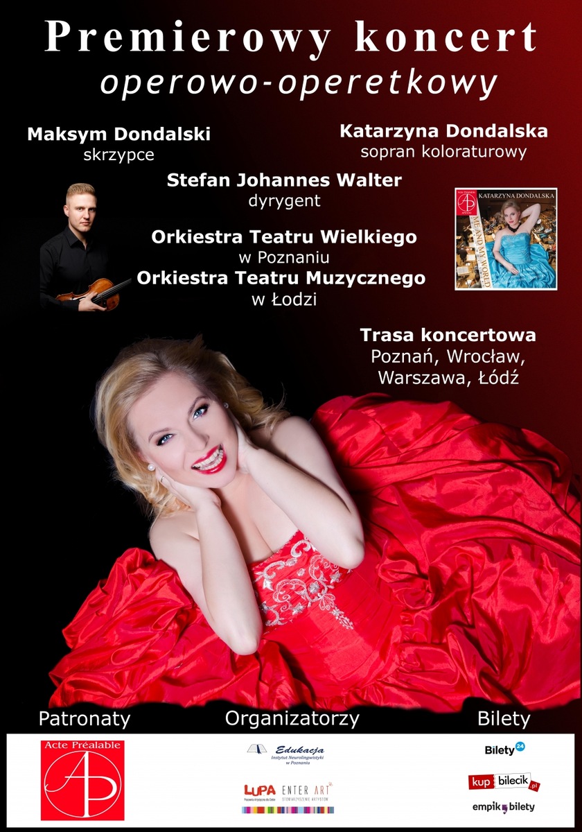 Do Polski przyjeżdża Katarzyna Dondalska, należąca do grona najwybitniejszych wirtuozów sopranowej techniki koloraturowej we współczesnej wokalistyce. Wystąpi 8 kwietnia 2019 r. na deskach Teatru Wielkiego w Poznaniu, 27 maja 2019 r. w Filharmonii Narodowej w Warszawie, 3 czerwca 2019 r. w Teatrze Muzycznym CAPITOL we Wrocławiu oraz 25 czerwca 2019 r. w Teatrze Muzycznym w Łodzi w wydarzeniu pt. Premierowy koncert operowo-operetkowy. W programie fragmenty słynnych oper i operetek takich twórców, jak Georges Bizet, Charles Gounod, Gioacchino Rossini, Niccoló Paganini, Giuseppe Verdi, Jacques Offenbach, Johann Strauss oraz Jerry Bock. Na zakończenie koncertu usłyszymy brawurowe wykonanie najbardziej znanych fragmentów ze Skrzypka na dachu.