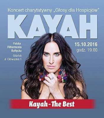 15 października 2016 r. w Polskiej Filharmonii Bałtyckiej, w ramach cyklu „Głosy dla Hospicjów”, odbędzie się koncert Kayah, która wystąpi z programem „The Best”.