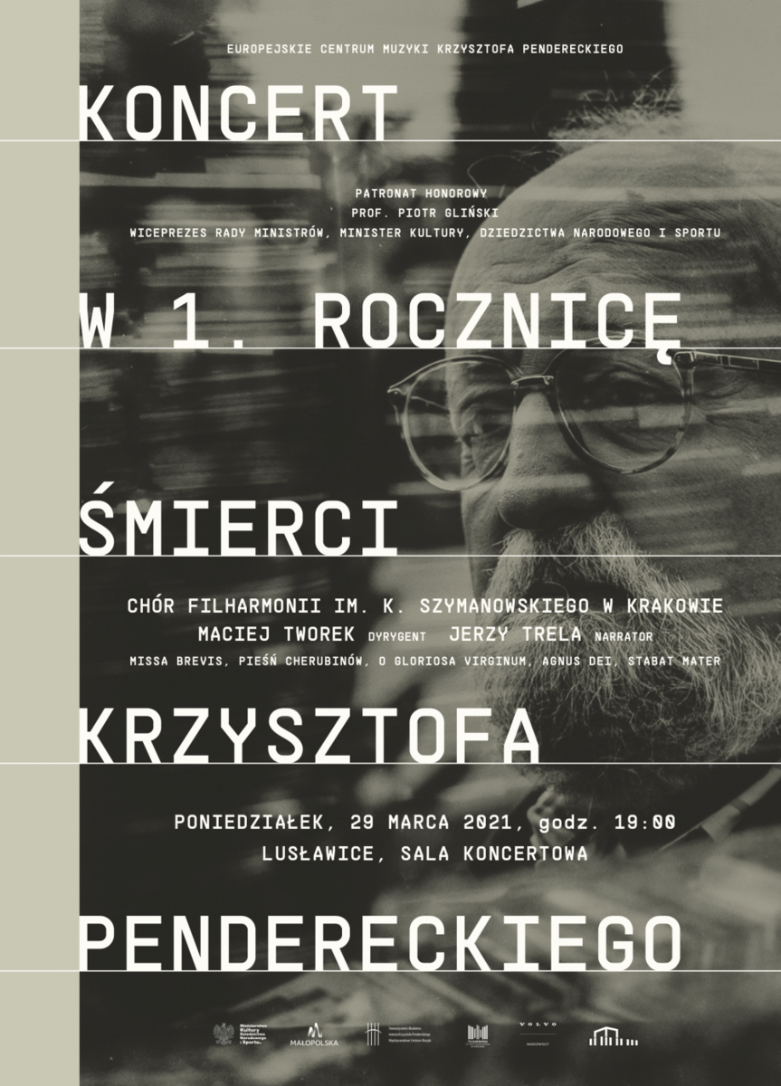 Wydarzenie "Koncert w 1. rocznicę śmierci prof. Krzysztofa Pendereckiego " z dnia 29.03.2021 19:00 zostało odwołane!
