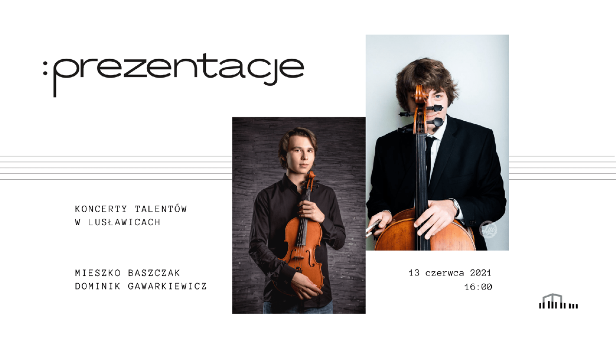 Już w najbliższą niedzielę, 13 czerwca, zaprezentujemy w Lusławicach kolejnych młodych, utalentowanych instrumentalistów. To już czwarta odsłona cyklu PREZENTACJE podczas której wystąpią Mieszko Baszczak (altówka) i Dominik Gawarkiewicz (wiolonczela).