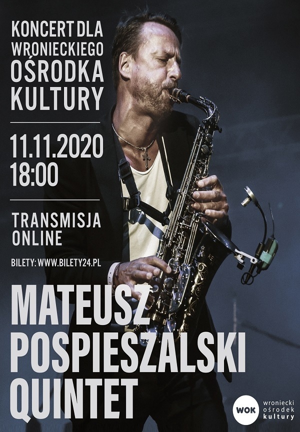 Po zakupie biletu każdy z Państwa otrzyma bilet z kodem za pośrednictwem, którego będzie można zobaczyć i wysłuchać kwintetu Mateusza Pospieszalskiego.